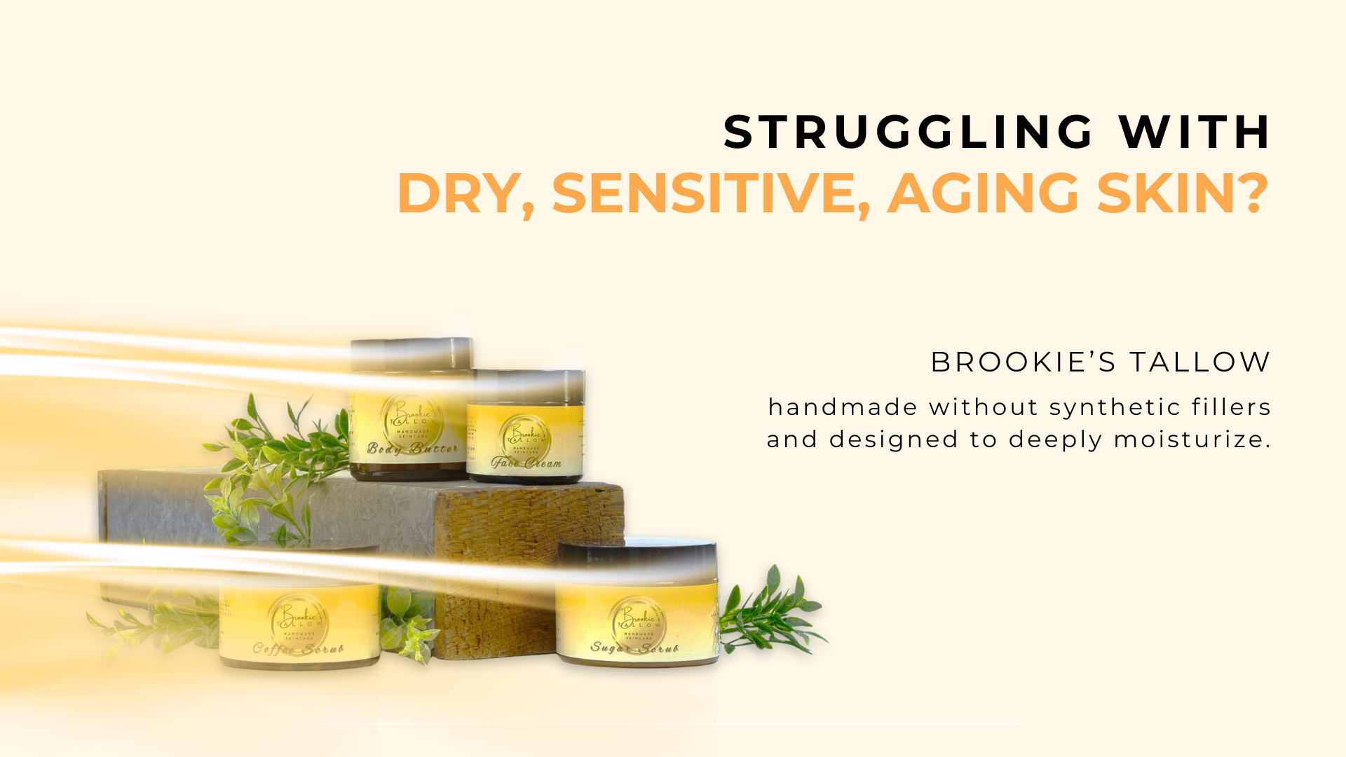 At Brookie’s Tallow, we keep skincare simple, clean, and time-tested. Each jar is handmade in small batches using grass-fed beef tallow, nourishing oils, and natural ingredients your skin actually recognizes. No fillers, no fluff-just real, old-school ingredients that deeply hydrate, protect, and glow. Created with care, rooted in tradition, and made to love your skin back.