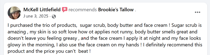 Your all-in-one solution for radiant, youthful skin. Brookie’s Tallow Bundles combine nourishing, anti-aging formulas to smooth, hydrate, and restore your natural glow.